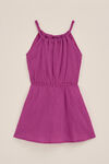 Junge Fashionistas, aufgepasst! Dieses fröhliche Kleid mit Struktur hat einen Innenhose, einen elastischen Bund für zusätzlichen Komfort und geflochtene Träger für einen verspielten Look. Der Knopfverschluss am Rücken rundet das Kleid ab und macht das An- und Ausziehen super einfach.