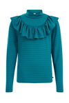 Eng anliegendes Shirt aus gemustertem Viskose-Mix mit Rüschen und Streifenmuster mit Glitzer. Ausgestattet mit rundem Ausschnitt und langen Ärmeln.
