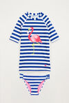 Normal geschnittenes UV-Schutz-Shirt aus Polyamid-Mix mit Muster, Stehkragen und kurzen Ärmeln. Die Hose ist mit einem elastischen Bund ausgestattet.