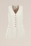 Schöner Lagenlook. Diese extralange Gilet aus einer Leinenmischung hat eine normale Passform und einen V-Ausschnitt für einen eleganten Look. Der Knopfverschluss und die Paspeltaschen runden das Modell ab.