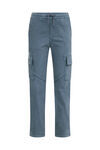 Pantalon cargo straight fit de mélange de coton à poches cargo, poches devant et derrière et cordons à la taille. Modèle à jambes droites.