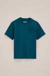 Un T-shirt en coton à col rond, poche poitrine (avec broderie décorative) et manches courtes.