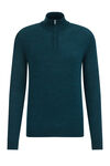 Pull marin de mérinos à demi fermeture éclair. Modèle de fin jersey à col droit et manches longues.
