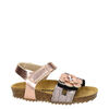 Nelson meisjes sandaal. Met deze leuke sandalen steel jij de show op het schoolplein! Uitgevoerd in imitatieleer met metallic en glitter coating. De banden zijn te verstellen met de klittenbandsluiting voor een betere pasvorm. Gevoerd met vilt-textiel dat zacht aan voelt en geen scherpe randen heeft. Voorzien van een suède voetbed voor een goede vochtregulatie. De foamlaag zorgt voor een fijne demping tijdens het lopen en spelen. Afgewerkt met een rubberen zool.
