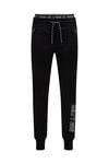 Pantalon de jogging slim fit de mélange de coton, à ceinture élastique contrastante à cordons, deux poches fendues devant et une poche décorative derrière. Modèle à texte appliqué dans le bas d'une jambe, doublure de polaire et bord côtelé aux chevilles.