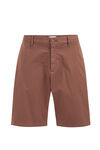 Short chino Van Gils de coton tissé avec stretch ajouté. Modèle à poches fendues, poches passepoilées à bouton derrière et braguette à fermeture éclair et boutonnée.