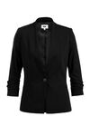 Blazer de mélange de viscose doublé, de confortable qualité stretch pour une coupe parfaite. Modèle à col châle, fermeture boutonnée, deux poches passepoilées et manches trois quarts froncées. Doublé.