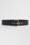 Ceinture de polyuréthane à structure serpent, boucle de métal et passant. Largeur : 5 cm.