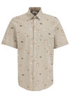 Faites toujours bonne impression, où que vous alliez. Cette chemise coupe slim fit, confectionnée en mélange de coton, est un atout pour votre garde-robe. L'article a un motif tendance, une poche poitrine, un col Kent, des manches courtes et une fermeture boutonnée.
