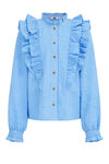 Chemisier regular fit de qualité tissée à motif et ruchés. Modèle à col rond, manches longues et fermeture boutonnée.