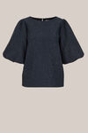 Ludique, élégant et étonnamment polyvalent. Ce chemisier de coupe classique présente un col rond, des manches courtes bouffantes avec élastiques, une texture décorative sur l'ensemble du corps et une fermeture à boutons au dos.