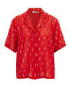 Découvrez une classe intemporelle avec ce chemisier de viscose regular fit. Avec un motif chic, une fermeture boutonnée pratique, un col en V élégant et des manches courtes confortables pour un look élégant sans effort.