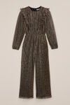 Qui a besoin d'un sapin de Noël quand on brille déjà ? Cette combinaison avec des fils pailletés, des ruchés et des jambes évasées transforme chaque jour en fête. Optez pour les paillettes et le glamour, de la tête aux pieds !
