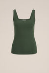 Découvrez un confort élégant avec ce débardeur de mélange de viscose à structure côtelée. La coupe ajustée et extensible épouse vos formes et l’encolure carrée moderne apporte une touche ludique.