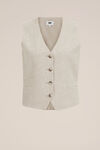 Avec ce gilet élégant, chaque tenue promet d'être réussie. Réalisé en lin mélangé, il présente un motif contemporain, un col en V intemporel, une fermeture boutonnée pratique et des poches passepoilées, pour un mélange sans effort de fonctionnalité et de polyvalence.
