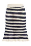 Jupe regular fit de coton à rayures et structure en maille ouverte. Modèle à taille élastiquée et ruchés dans le bas. La jupe tombe au-dessous du genou et a un jupon.