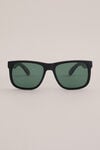Pour les hommes qui aiment avoir le choix, mais pas trop. Ces lunettes de soleil ont des verres carrés, une protection UVA/UVB et un étui en microfibre, en noir mat avec des verres verts ou en gris foncé transparent avec des verres bleus. Elles se marient bien avec tous les jeans.
