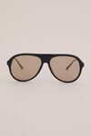 Pour les hommes qui déterminent le rythme d'une ville en fonction des cafés. Ces lunettes de soleil ont une monture aviateur noire avec des verres marron clair, des embouts métalliques, une protection UVA/UVB et un étui en microfibre. Vous allez les adorer.