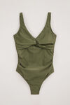 Un maillot de bain entièrement doublé. Le maillot de bain a des bretelles réglables et des plis flatteurs sur le devant.