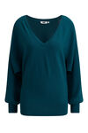 Pull regular fit de mélange de viscose finement tissé à fine structure côtelée. Modèle à col en V et manches longues.