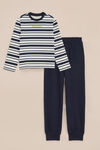 Un indispensable tout droit sorti du pays des rêves ! En mélange de coton doux, avec un print à rayures et un imprimé ludique, ce pyjama offre un confort ultime pour une bonne nuit de sommeil. La taille élastiquée et les jambes en fuseau complètent le tout.
