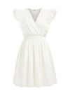 Robe de coton regular fit à broderie anglaise, ruchés et smocks à la taille. Modèle à col à revers et manches courtes.