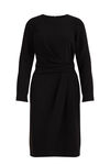 Robe slim fit de tissu robuste et tissé, avec un détail plissé chic. Modèle à fermeture éclair dissimulée, fente derrière et manches longues. La robe doublée tombe au-dessous du genou.