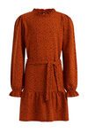Robe loose fit de mélange de coton à motif et structure. Modèle à col rond, manches longues et ceinture à nouer.