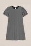 Brillez toute la journée ! Cette robe de qualité jacquard présente un motif joyeux, des fils pailletés, un col rond avec fermeture boutonnée et des manches courtes. Pour les filles qui veulent ajouter un peu de magie à leur tenue chaque jour.