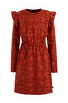 Robe regular fit de mélange de coton à motif, taille élastiquée et volant. Modèle à col rond et manches longues.