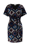 Robe regular fit de qualité velours à paillettes, ceinture et taille élastique. Modèle à col en V et manches courtes. La robe tombe au-dessus du genou.
