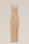 Un look inoubliable pour une journée inoubliable. Faisant partie de notre collection mariage, cette robe de coupe regular fit présente une longueur midi (ou maxi pour les femmes plus petites), un col drapé et de fines bretelles réglables. Elle est dotée d'une fermeture éclair dans le dos et d'un élastique sous la poitrine pour renforcer la silhouette. La fente latérale et les paillettes éblouissantes rendent cette tenue vraiment irrésistible.