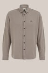 La couche qui termine chaque tenue. Cette chemise en maille présente une coupe regular fit, un col, une fermeture à boutons, des manches longues boutonnées et un subtil motif de rayures dans le tissu.