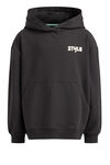 Sweat-shirt oversized de mélange de coton à application brodée avec imprimé pailleté dans le dos, broderie sur la poitrine et poche kangourou. Modèle à capuchon et manches longues.