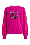 T-shirt regular fit de coton avec stretch ajouté à imprimé et application de velours. Modèle à col rond, manches longues à bords smockés et élastique dans le bas.