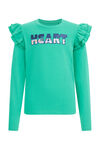 T-shirt ajusté de mélange de coton à broderie et ruchés. Modèle à col rond et manches longues.