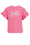 Ce T-shirt regular fit en coton mélangé présente une broderie de fil pailleté, de jolis ruchés sur les manches courtes et un col rond. C'est l'article parfait pour le plaisir de le porter au quotidien.