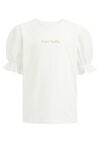 T-shirt ajusté de mélange de coton à broderie. Modèle à col rond et manches courtes en broderie anglaise.