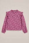 Mignon, mais pas ennuyeux. Ce T-shirt a une coupe droite, un col rond avec des volants et des manches longues avec des volants sur les épaules. L'imprimé floral lui confère douceur et gaieté. Conseil : cet article fait partie d'un ensemble.