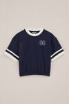 Sportif avec un look lycéen branché. Ce T-shirt possède une coupe oversized, un col rond et des manches courtes côtelées. Les lignes contrastées sur les manches et l’ourlet élastiqué au bas du T-shirt lui confèrent une allure moderne et audacieuse.