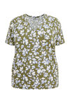 Ce T-shirt regular fit en viscose douce offre confort et style avec un design unique, un col en V flatteur et des manches courtes.