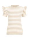 Ce charmant T-shirt est confectionné dans un mélange de coton biologique doux avec un motif à rayures, une structure côtelée subtile et de magnifiques ruchés. Il présente un col rond confortable et des manches courtes aérées.