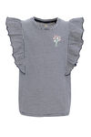Un T-shirt en coton mélangé regular fit avec un motif tendance et de jolis détails de broderie. Un col rond et des manches courtes - avec des ruchés subtils - offrent un look confortable et tendance.