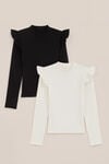 Deux fois plus de mignonnerie ! Ces t-shirts en mélange de coton présentent des ruchés, une structure côtelée, un col rond et des manches longues. Pour les jours où un seul joli t-shirt ne suffit pas.