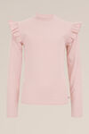 Laissez-vous envelopper par le confort et le style ! Ce T-shirt en coton mélangé doux avec une structure côtelée et des volants joyeux est un incontournable. Avec un col rond douillet et des manches longues, vous serez prêt à conquérir le monde.