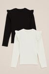 Toujours pratique, n'est-ce pas ? Ce lot de 2 T-shirts côtelés offre deux fois plus de style. Ces articles ont une coupe regular fit, une encolure ronde, des manches longues et de jolis volants sur les épaules. De plus, ils sont doux, extensibles et toujours prêts pour l'aventure.
