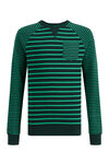 T-shirt de pur coton regular fit à rayures et structure. Modèle à col rond, poche poitrine et manches longues.