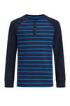 T-shirt de coton regular fit à rayures et fermeture boutonnée. Modèle à col grand-père et manches longues contrastantes.