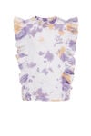 Complétez la garde-robe des enfants avec ce T-shirt branché. Fabriqué en coton confortable, il présente un motif tie-dye, des volants, de la broderie, une encolure ronde et des manches courtes pour un look aussi bien décontracté que branché.