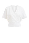 Top de coton regular fit à broderie anglaise et smocks. Modèle à col en V, manches courtes et fermeture boutonnée.